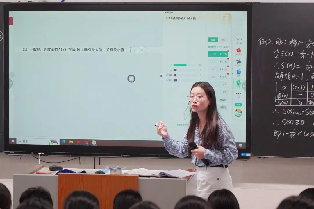 孔伟铭老师运用多媒体辅助教学,动态展示图象变换,将抽象知识直观化,激发学生兴趣。通过智慧纸笔及时关注学生的做题情况,及时反馈,精准指导,确保学生掌握,还通过典型例题拓展延伸,提升学生知识运用能力。