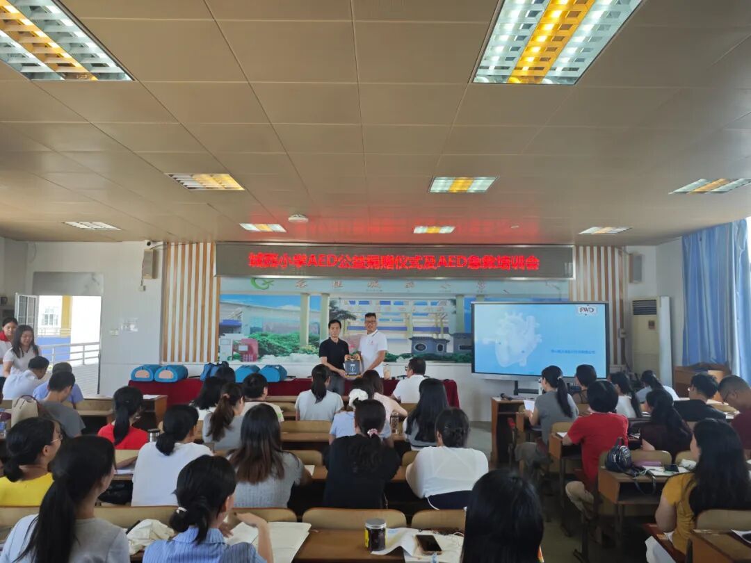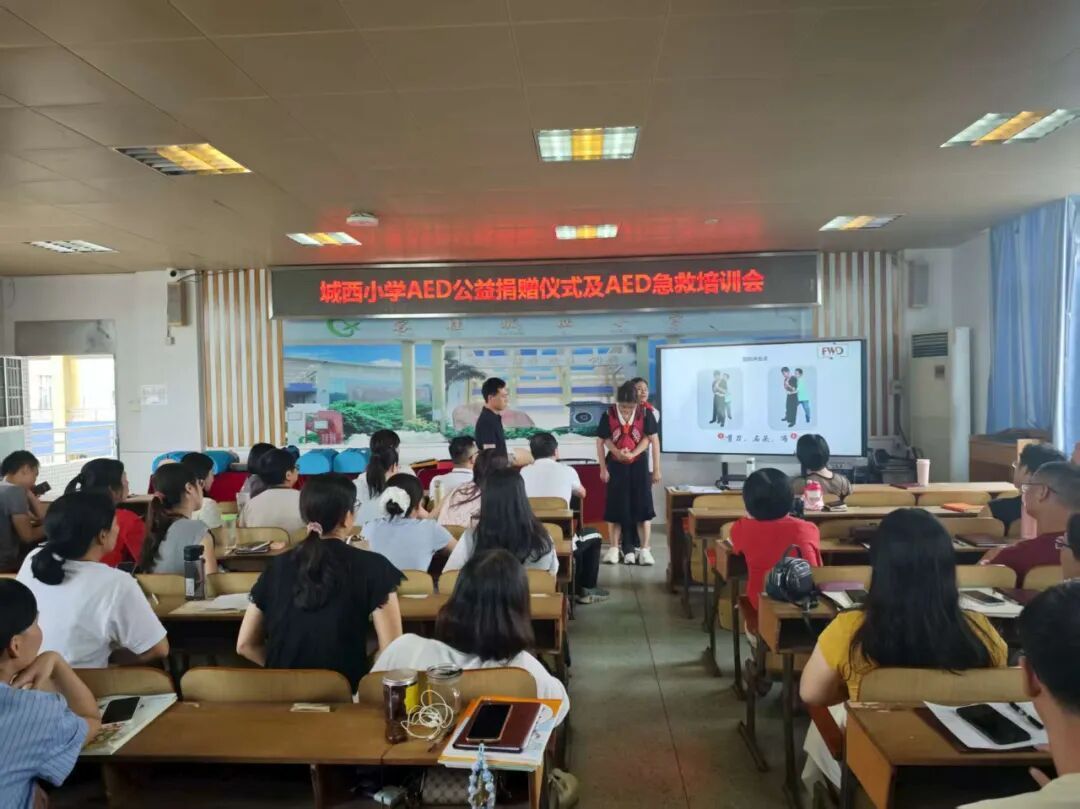 近日,一场意义深远的AED公益捐赠仪式在城西小学隆重举行。广东省一心公益基金会第六服务队向城西小学捐赠了自动体外除颤器(AED)设备,并为教师们开展了急救知识培训,为校园安全再添一道“生命防线”。